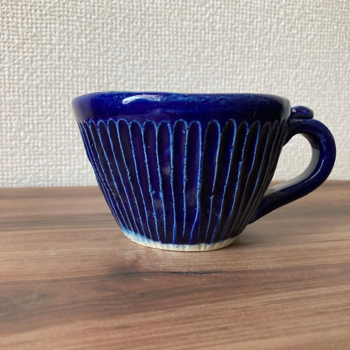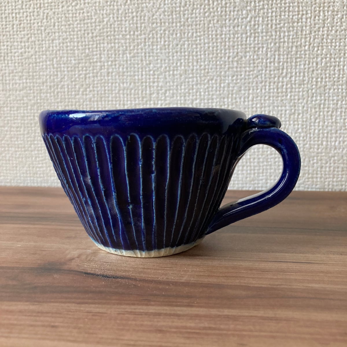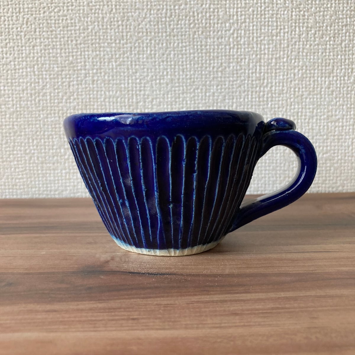 深い青色が夜空のような、瑠璃色のしのぎカップです。